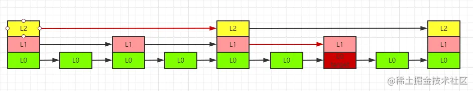 对于每一个新插入的节点,都需要调用一个随机算法给它分配一个合理的层数。直观上期望的目标是 50% 的 Level1,25% 的 Level2,12.5% 的 Level3,一直到最顶层,因为这里每一层的晋升概率是 50%。