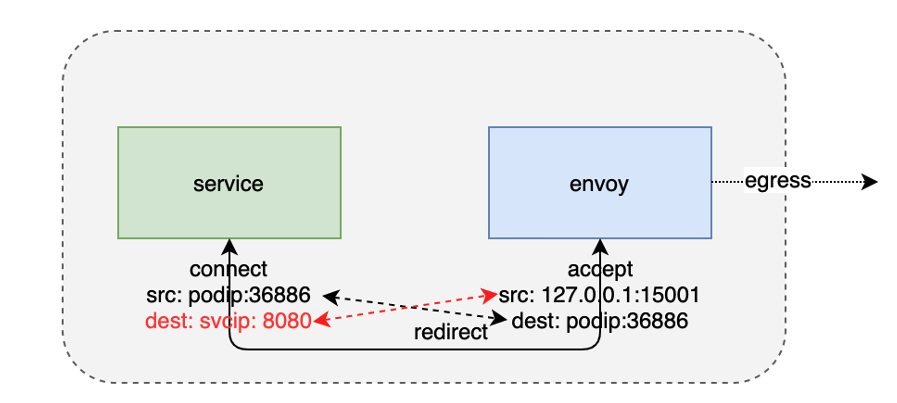 egress会稍微复杂一点,在一个egress端服务程序对外发出的请求被iptables规则重定向到了envoy监听的一个15001的端口。在这里,发起方的源地址和接收方的目的地址是一一对应的,但是发起方的目的地址和接收端的源地址有了一个变化,主要是由于iptables对地址有一个重写。所以我们在存储到sockhash中的时候,需要对这部分信息进行一个处理。由于istio的特殊性,直接可以把它改写成envoy所监听的一个本地服务地址。这样再存储到sockhash当中,它们的地址信息还是可以反向一一对应的。所以在查找的时候,还是可以根据一端的socket地址信息查找到另一端的socket,达到数据拷贝的目的。