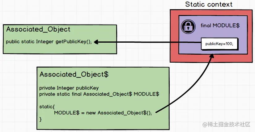 Associated_Object类同样有一个静态方法getPublicKey:它永远都指向MODULE$内的publicKey。