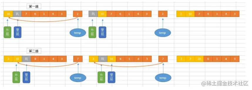 # j 表示每次遍历需要比较的次数,是逐渐减小的