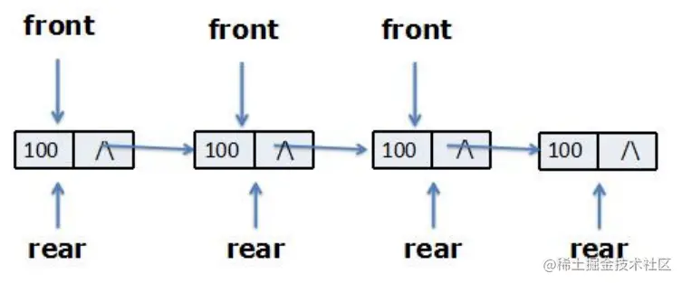 需要两类不同的结点: 数据元素结点,队列的队首指针和队尾指针的结点
