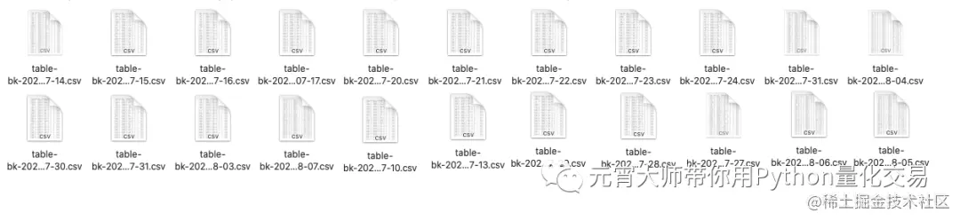 第二步把这周一到周五这一周的板块数据合并为一份。此处仅需将这些DataFrame对象简单的级联即可,我们就用pd.concat()来完成。关键参数axis为0表示沿着列方向将多个 DataFrame 对象拼接到一起。如下所示: