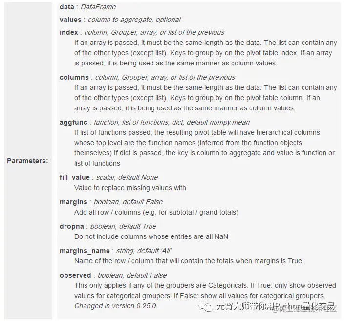 pandas.pivot_table函数接口介绍如下: