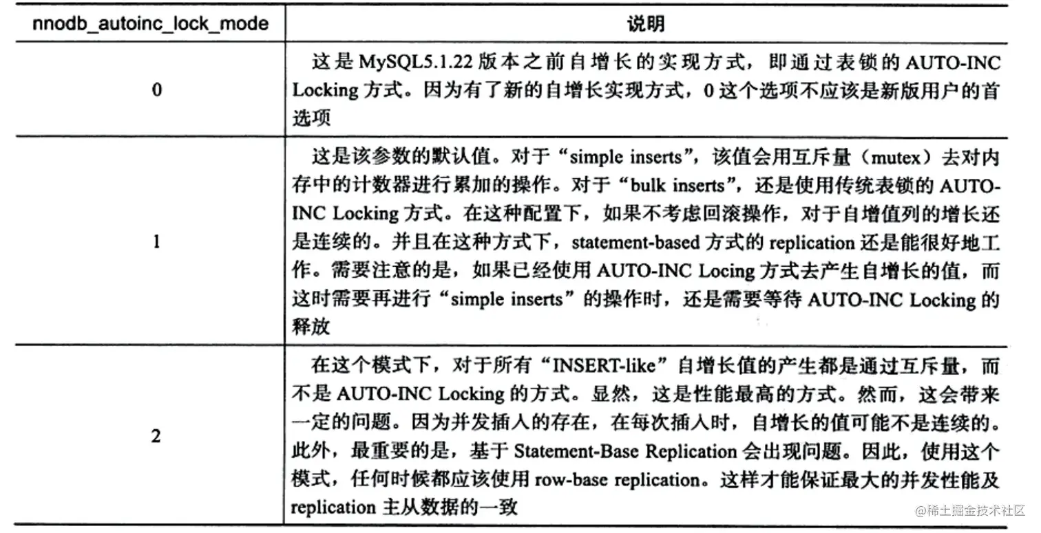 MySQL关于自增锁的参数innodb_autoinc_lock_mode有三个值