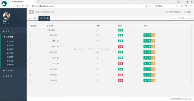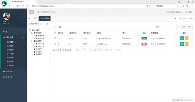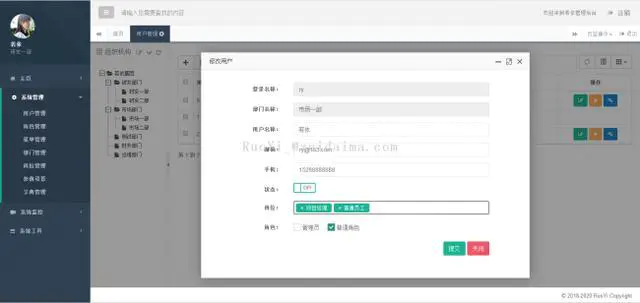 9. 在线用户:当前系统中活跃用户状态监控。(可强退)