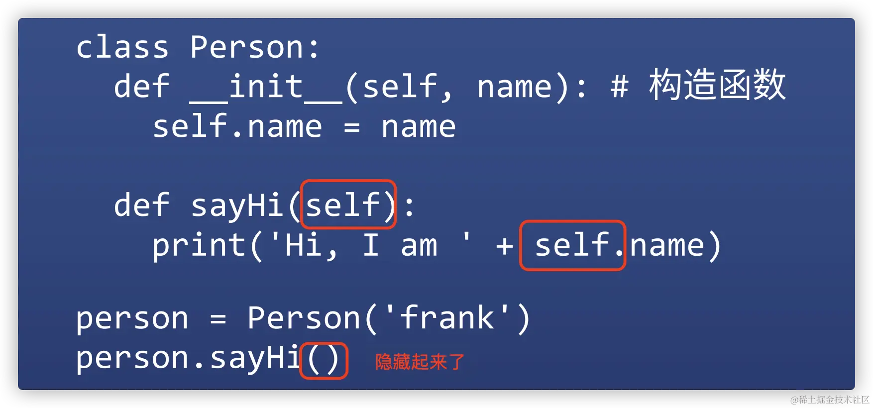 这种方式确实很傻,但是很容易让人理解。python用了这种方法,只是在调用时,把括号里的自己给隐藏起来了