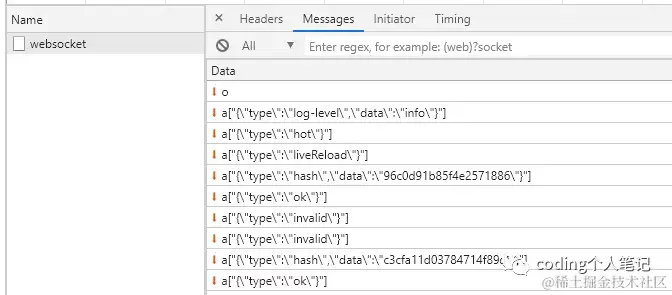 我们一般用webpack-dev-server启动一个开发服务,webpack内部实现watch,文件发生修改就重新打包编译保存在内存中,webpack-dev-server依赖中间件webpack-dev-middleware和webpack之间进行交互,如果文件变化了,没有配置热更新,webpack-dev-server会通知浏览器进行刷新,注意是刷新不是热更新。启动开发服务之后,浏览器和服务端是通过websocket进行长连接的,可以自己在network里面看。