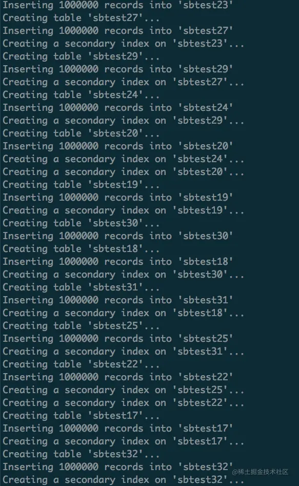 sysbench --config-file=config oltp_update_index --threads=16 --tables=32 --table-size=5000000 run --time=120
