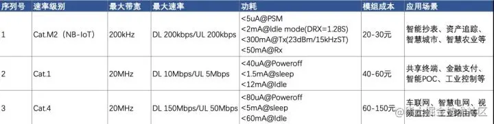 (2)LTE Cat.M1这种设备速率可以达到1Mbps,并且在降低功耗方面上做了优化;