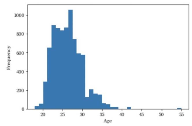然后第二个问题来了:是什么样的人在参加快速相亲这样的活动呢?真的都是大龄青年(年龄大于30)嘛?这个时候我们就可以通过对参加人群的年龄分布来做一个统计分析。