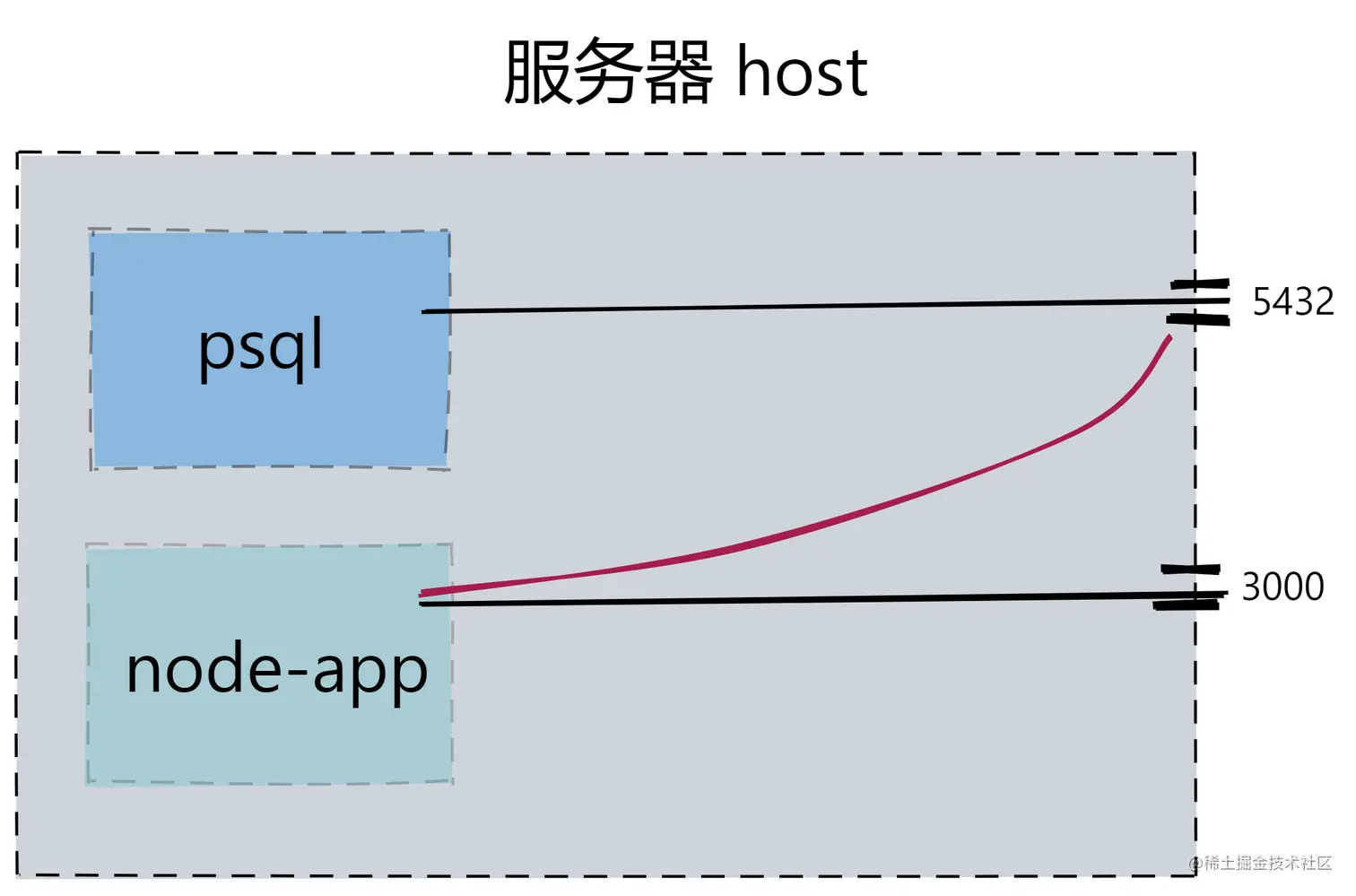 容器中暴露端口等同于宿主机暴露端口。