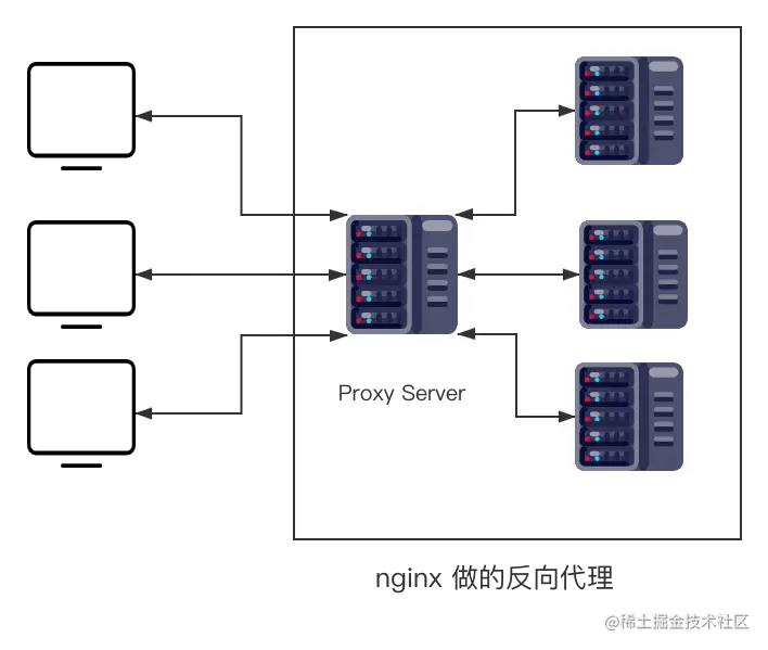 并将从服务器上得到的结果返回给客户端,此时代理服务器对外就表现为一个服务器。