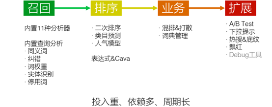 搜索的核心是做召回、排序、业务需求以及功能扩展,投入重、依赖多、周期长,一般企业难以投入大规模人力与资源。因此开发性能与体验优秀的搜索引擎并非易事。