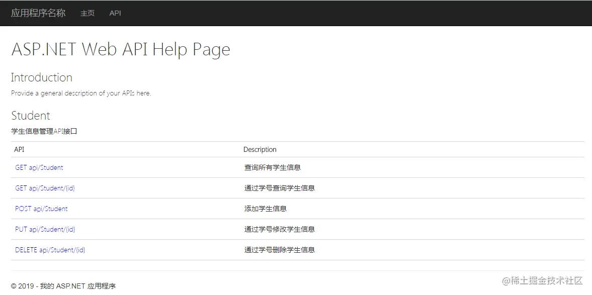 运行程序,点击页面中API菜单(http://localhost:56783/Help),可以看到API接口,如下图所示: