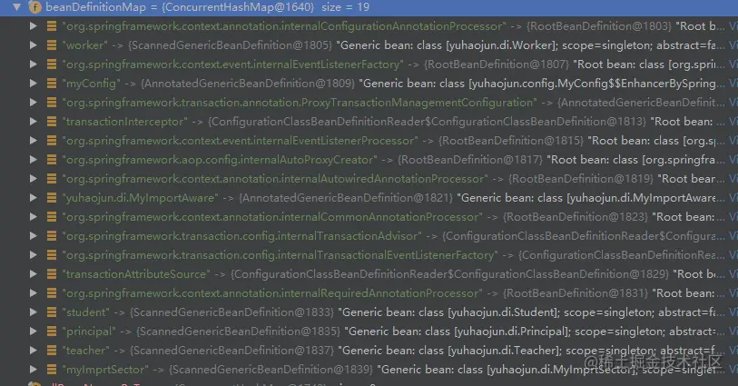 - 除了我自己用来测试的类,重点关注其他spring内置的beanDefinition