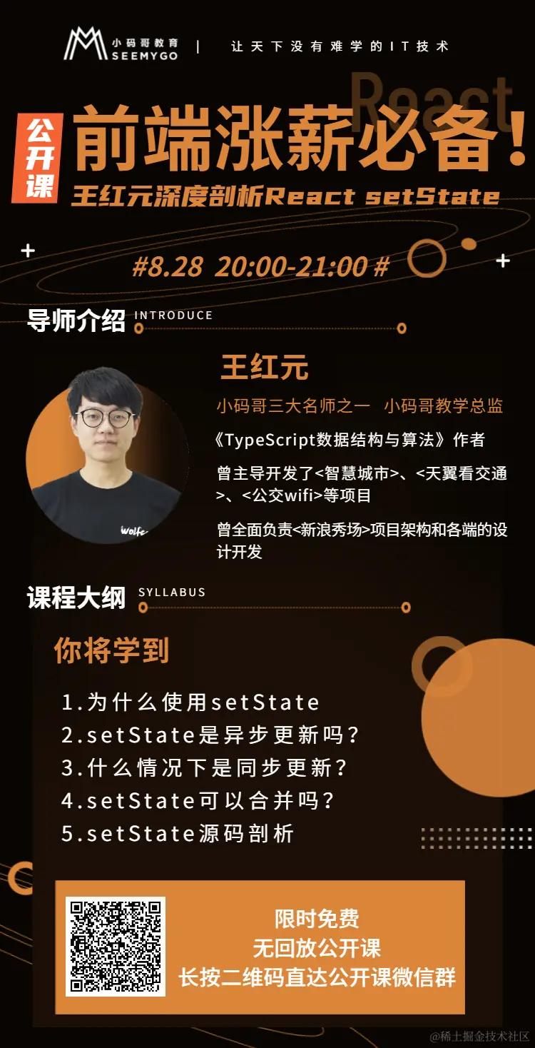 为什么要学React 用户4197351930284 2020-08-25 229 阅读1分钟 最火框架React setState免费公开课 涨薪必学! 8.28晚20:00前端大神coderwhy腾讯课堂等着你 扫描下方二维码,直达公开课直播群 赶快拉着你的小伙伴一起来充电