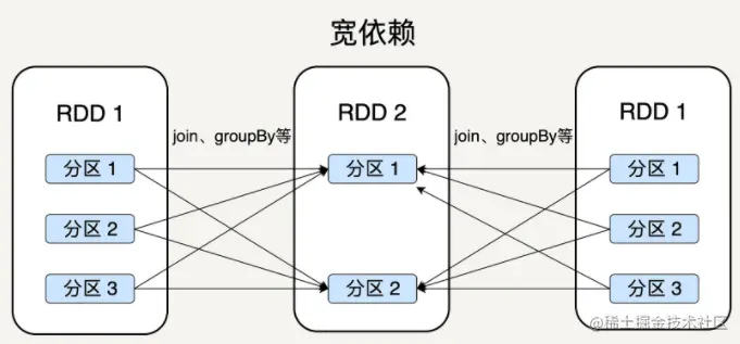 显然,窄依赖允许子 RDD 的每个分区可以被并行处理产生,而宽依赖则必须等父 RDD 的所有分区都被计算好之后才能开始处理。