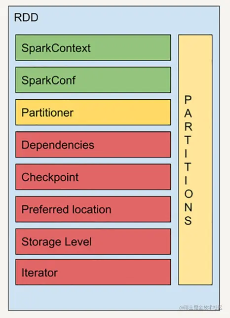 实际上 RDD 的结构远比你想象的要复杂,让我们来看一个 RDD 的简易结构示意图: