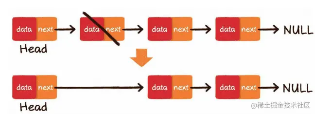 尾部删除,是最简单的情况,把倒数第2个节点的next指针指向空即可。头部删除,也很简单,把链表的头节点设为原先头节点的next指针指向的节点即可。中间删除也比较简单,把要删除节点的前置节点的next指针,指向要删除节点的next指针指向的节点。