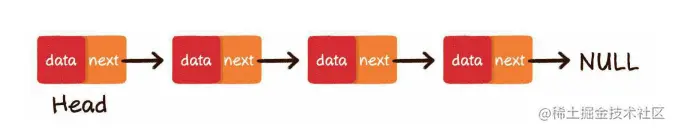 链表的第1个节点被称为头节点,最后1个节点被称为尾节点,尾节点的next指针指向空。对于链表其中一个节点我们只能根据节点A的next指针找到该节点的下一个节点B,再根据B的next指针找到下一个节点C。