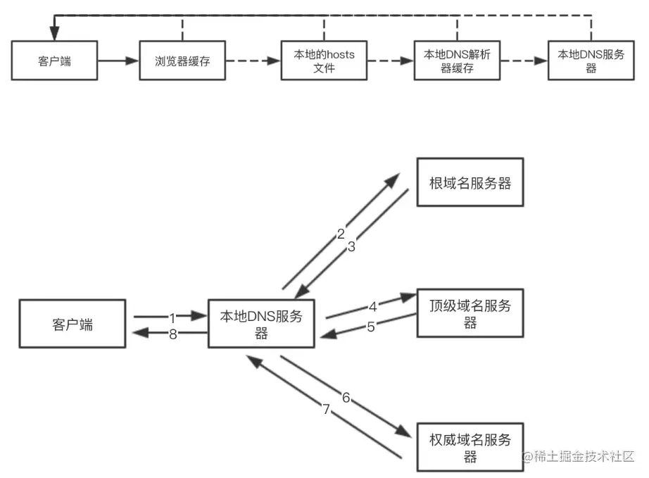 ⑤如果以上都没查询到就用递归搜索域名下的DNS