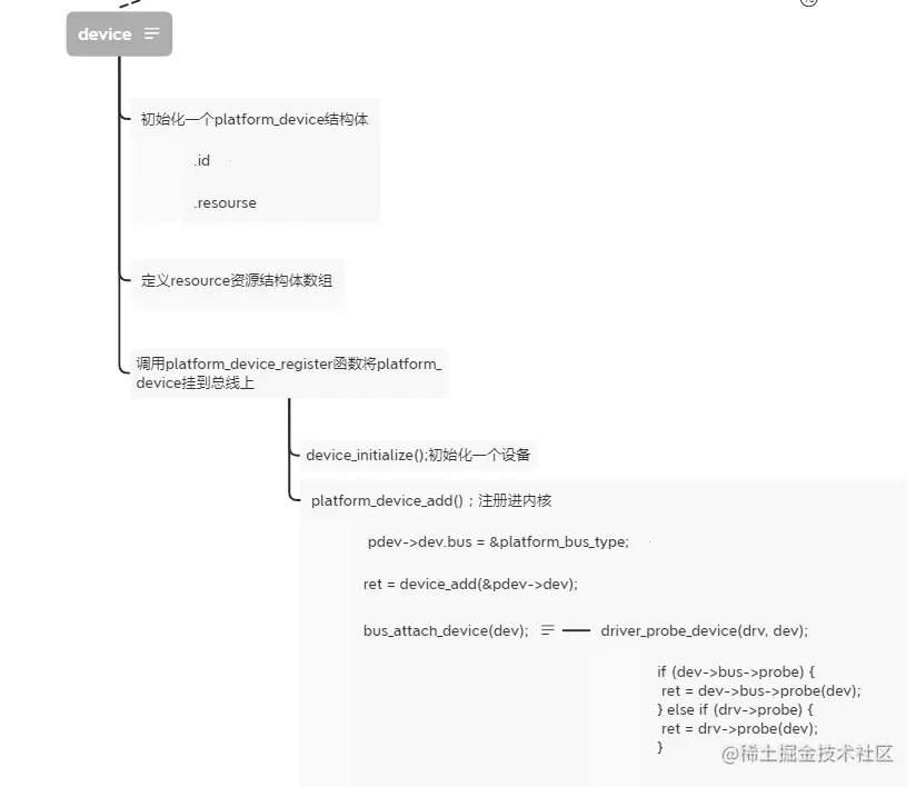 probe()函数。一般情况下都是都是调用自己驱动里的probe函数,只有在极少数的总线中,才会调用总线的probe函数。 - 这段代码在不管从设备的初始化还是驱动的初始化都可以进行