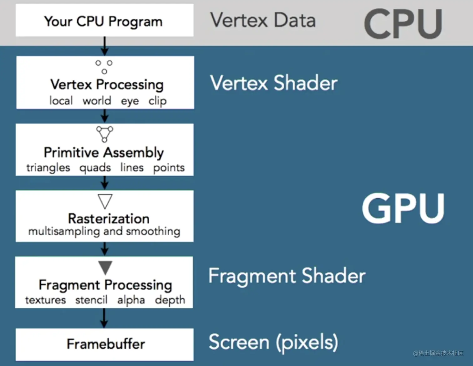 - 处理好的顶点数据进行图元装配