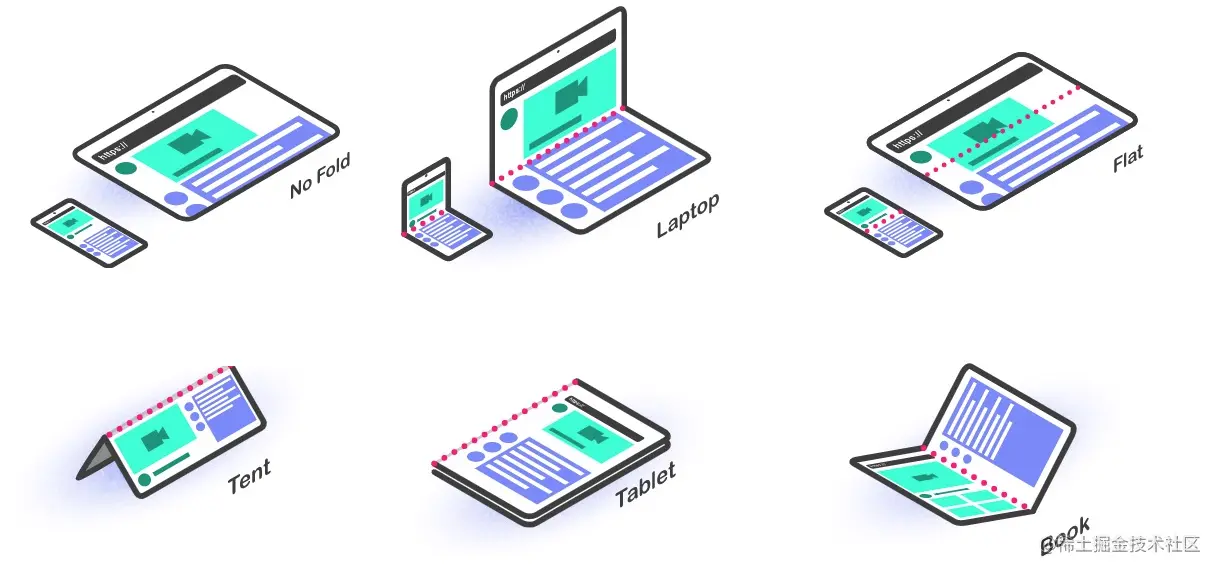 随着折叠屏设备的出现,目前已在市场上占据了举足轻重的位置,折叠屏的未来不可限量。它具有轻便、易携带、大屏等诸多优点。当设备折叠时,它实际上形成一个角度, 因此,响应式设计实现新的用户体验应运而生。