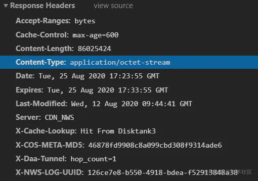 文件类型是octet-stream ,支持范围请求 Accept-Ranges,大小 86025424 字节。