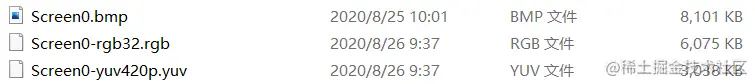 - 视频编码解码过程中,常见的是YUV格式,因为同样的图片yuv格式的图片大小远小于RGB图片大小。下图是同一张图片不同格式大小对比: