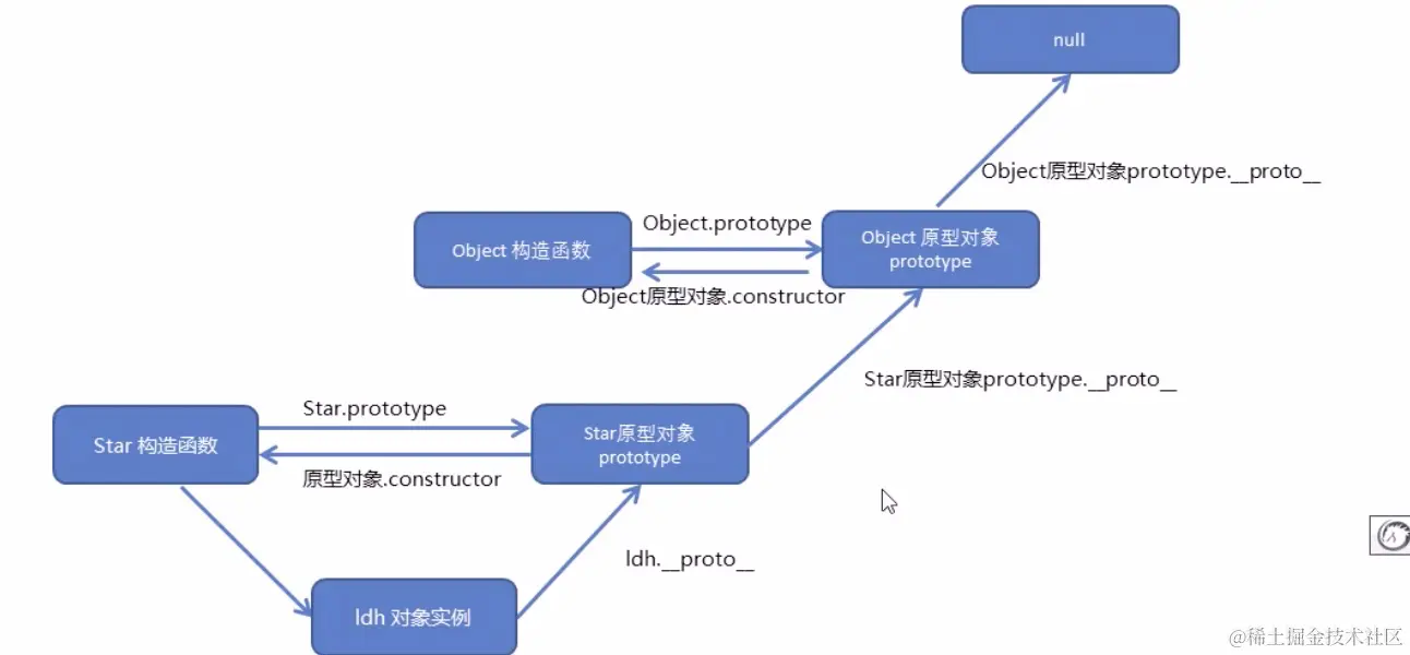 对象成员的查找规则:自身实例对象上找,找不到往原型上找,找到停止,找不到的话,一直找到null