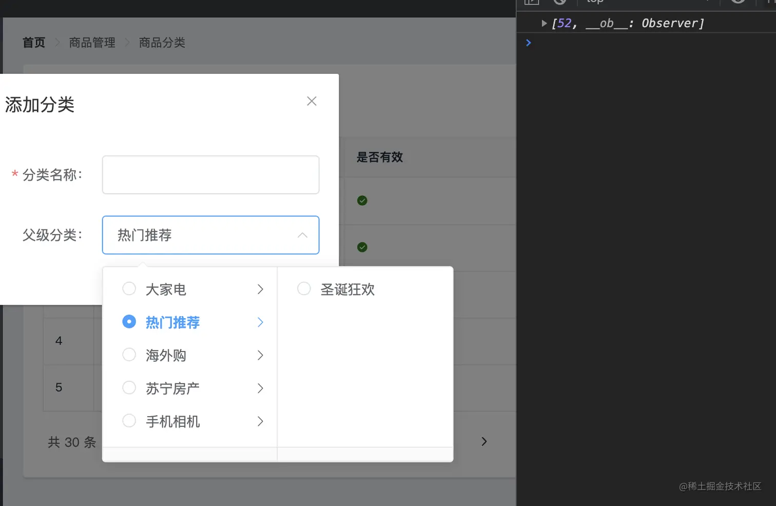 - 默认情况下只能选中二级列表,如何选中一级列表呢?比如选中下图的大家电