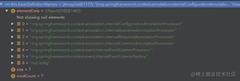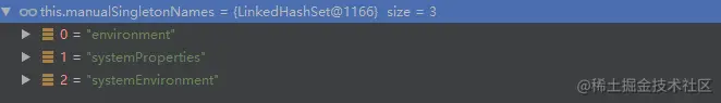 //循环manualSingletonNames集合,beanFactory的初始化过程中添加了3个beanName