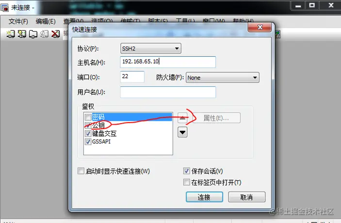 进入CRT--将密码去掉--选择公钥--属性—选择id_rsa-连接
