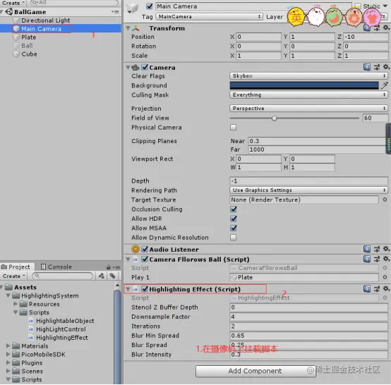 当你添加的一个用了RequireComponent组件的脚本,需要的组件将会自动被添加到game object(游戏物体) 用法:在新建的类前面加 [RequireComponent(typeof(HighlightableObject))]
