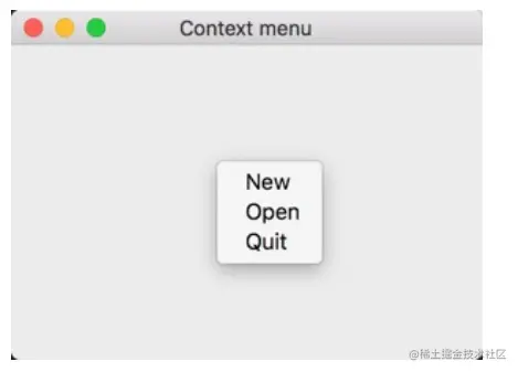 菜单栏是非常常用的,是一组命令的集合(Mac OS下状态栏的显示不 一样,为了得到最相似的外观,我们增加了一句menubar.setNativeMenuBar(False)