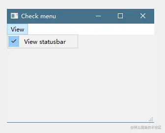 我们创建了只有一个命令的菜单栏,这个命令就是终止应用。同时也创 建了一个状态栏。而且还能使用快捷键 Ctrl+Q 退出应用