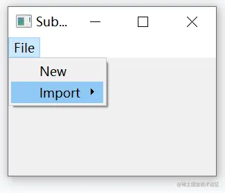 这个例子里,有两个子菜单,一个在file菜单下面,一个在file的 import下面