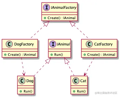 客户只需要知道所需产品的具体工厂,而无须知道具体工厂的创建产品的过程,甚至不需要知道具体产品的类名。