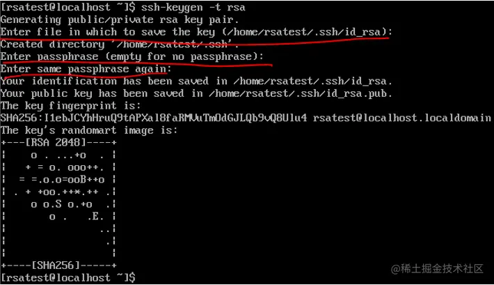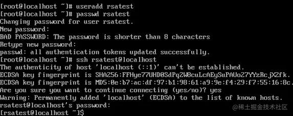 ssh rsatest@localhost 进入rsatest用户操作界面