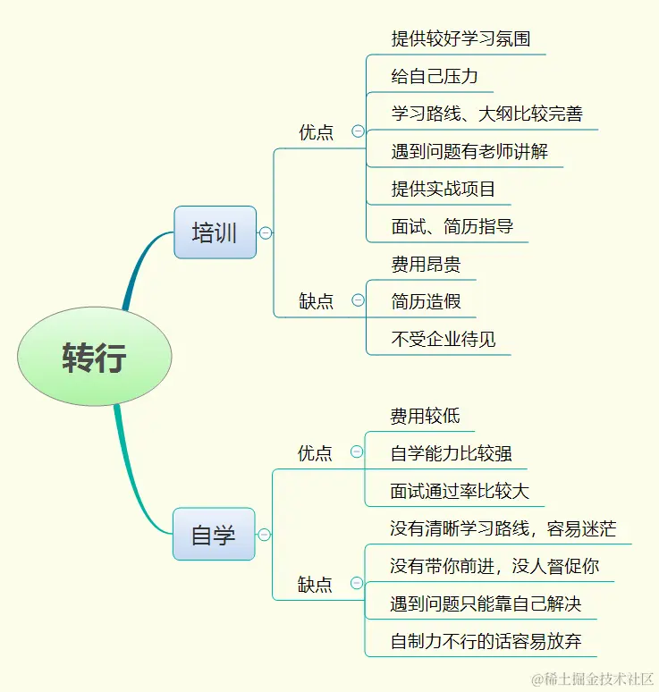 对于自学还是培训,我做了这么一个思维导图来给大家做分享。