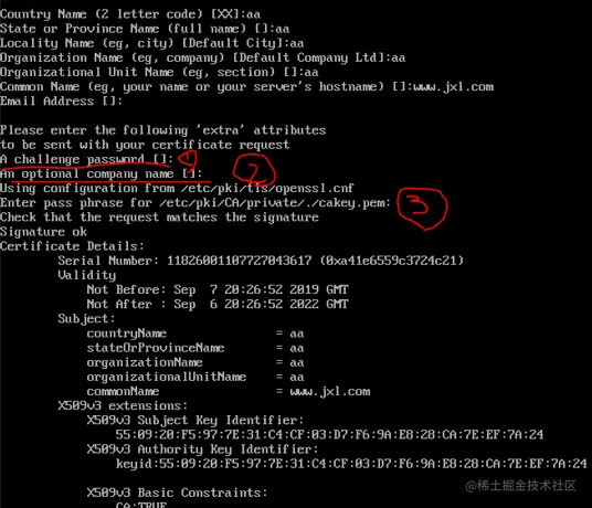 (cd /etc/pki/CA/private 删除cakey.pem)