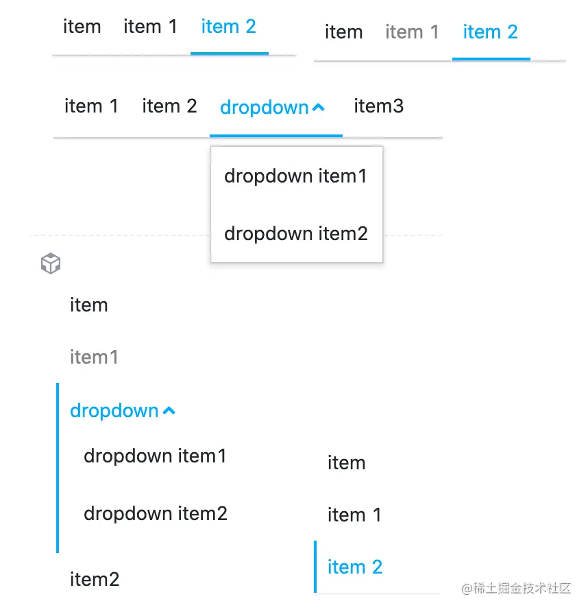 // 点击MenuItem需要切换active状态,active只有一个,在Menu组件创建state指示当前的active是哪一个。
