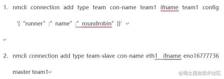 Centos 7.4 双网卡聚合 AlexKim 2020-08-26 677 阅读1分钟 使用配置文件配置双网卡 1. 进入一张网卡配置文件 (有些多余的参数需要删除) 将BOOTPROTO改为none , MASTER后填写的名称是聚合网卡名称 改成如下样子 2. 进入第二张网卡配置文件 (有些多余的参数需要删除) 3. Cp ifcfg-eno16777736 ifcfg-team1 Vi ifcfg-team1 (team1聚合网卡) 做完后退出配置文件 service network restart ifconfig 查看3张网卡MAC地址一样 使用命令方式配置 Bond聚合 Team 聚合