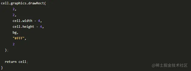 通过上述对比,大家会发现Laya简单优雅很多。Graphics绘图类也不太一样。感觉还是L aya的接口比较简单优雅。同样是绘制矩形, Cocos要写很多代码,如下: