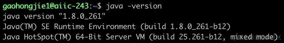 export JAVA_HOME=/data/gaohongjie1/usr/local/jdk1.8.0_261 # jdk-8u261-linux-x64.tar.gz 解压后的路径