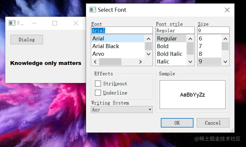# 创建一个字体选择对话框