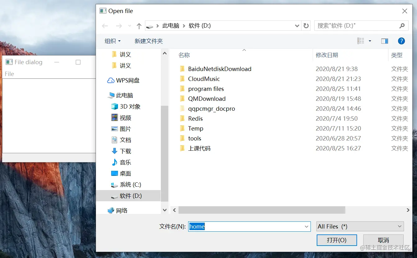 # 弹出 QFileDialog 窗口