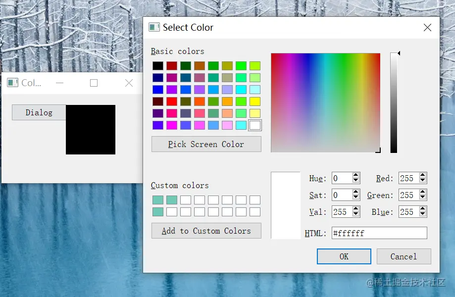# 弹出一个 QColorDialog 对话框