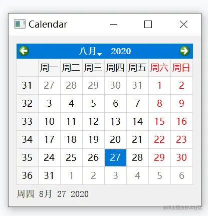 # 创建一个 QCalendarWidget